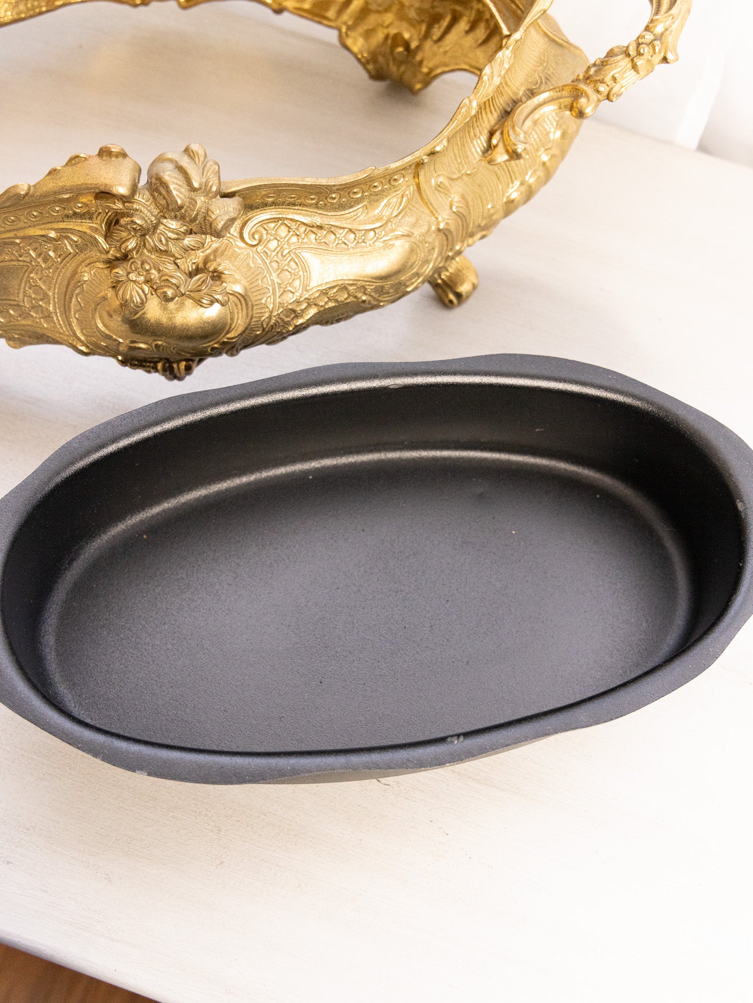 - Great used condition: item(s) may have light scratches, small marks, tarnishing/patina (for metal items), minor unevenness/wobbles, minor roughness/flea bites, and mild wear typical of age and normal use. One foot does not sit flush to the surface, so it has a wobble if rocked with a hand.