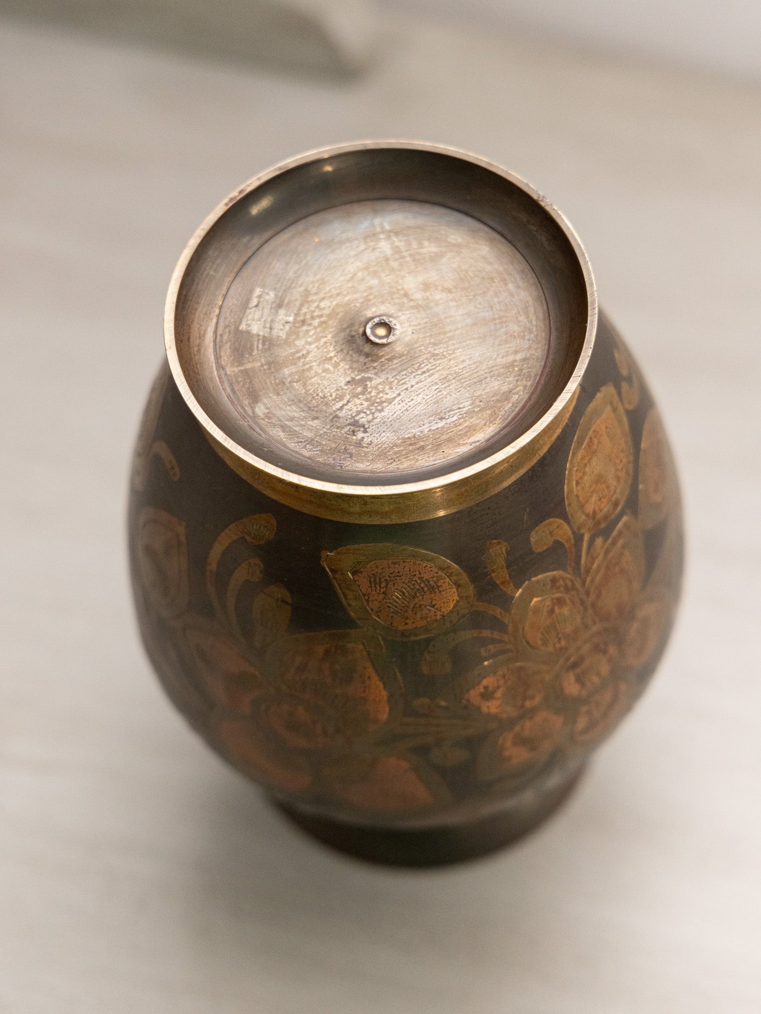 - Great used condition: item(s) may have light scratches, small marks, tarnishing/patina (for metal items), minor unevenness/wobbles, minor roughness/flea bites, and mild wear typical of age and normal use. Small dent near middle on one side.