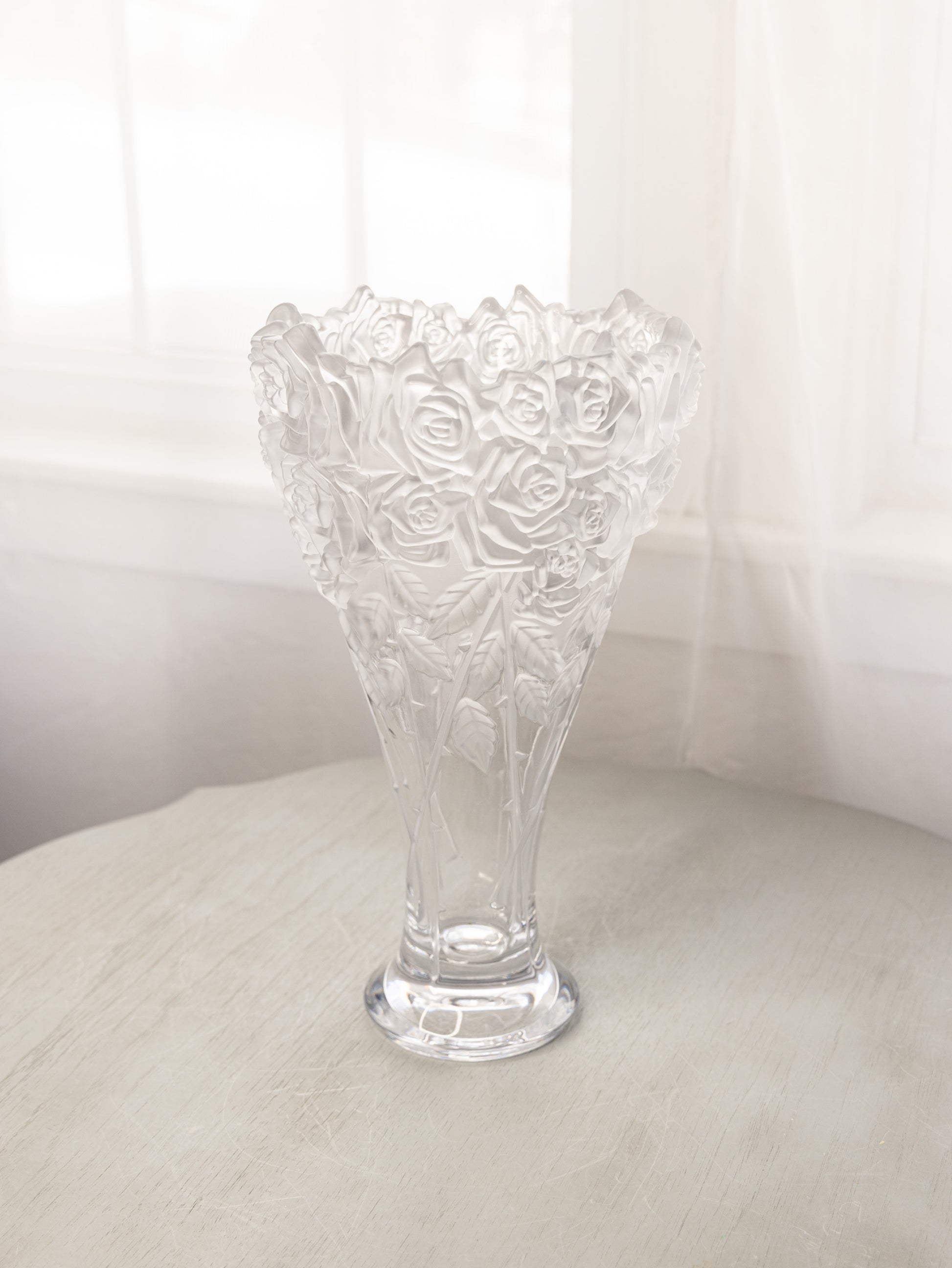 - Great used condition: item(s) may have light scratches, small marks, tarnishing/patina (for metal items), minor unevenness/wobbles, minor roughness/flea bites, and mild wear typical of age and normal use; some minor discoloration/cloudiness at the bottom inside, a few tiny chips in the flowers.
