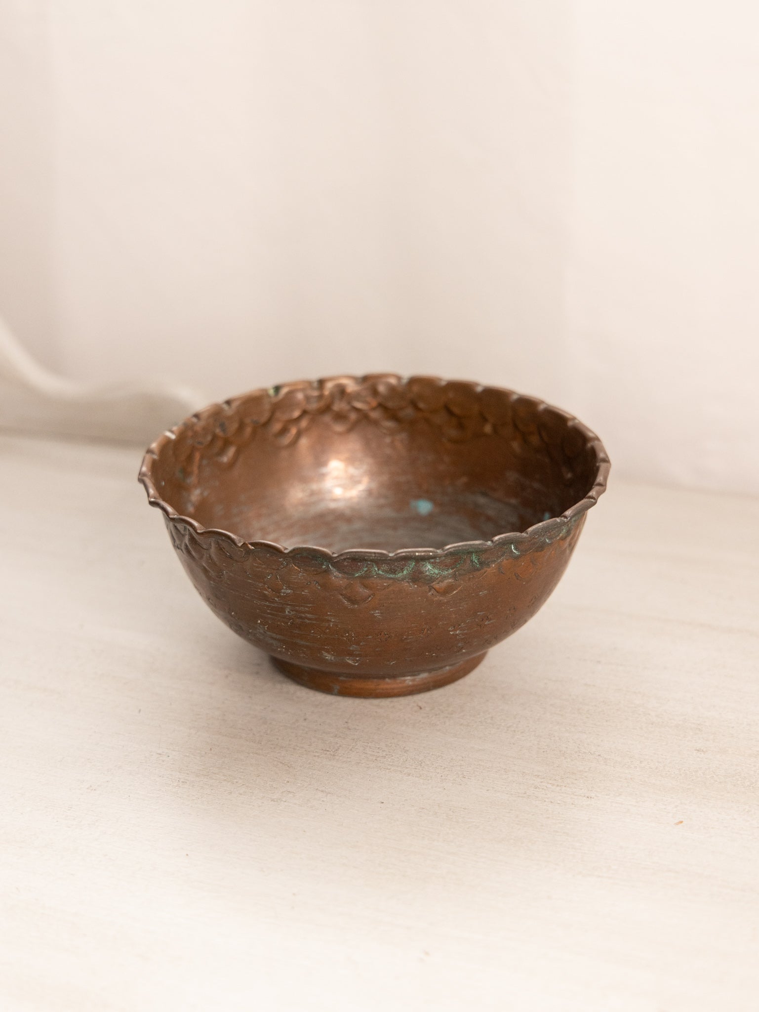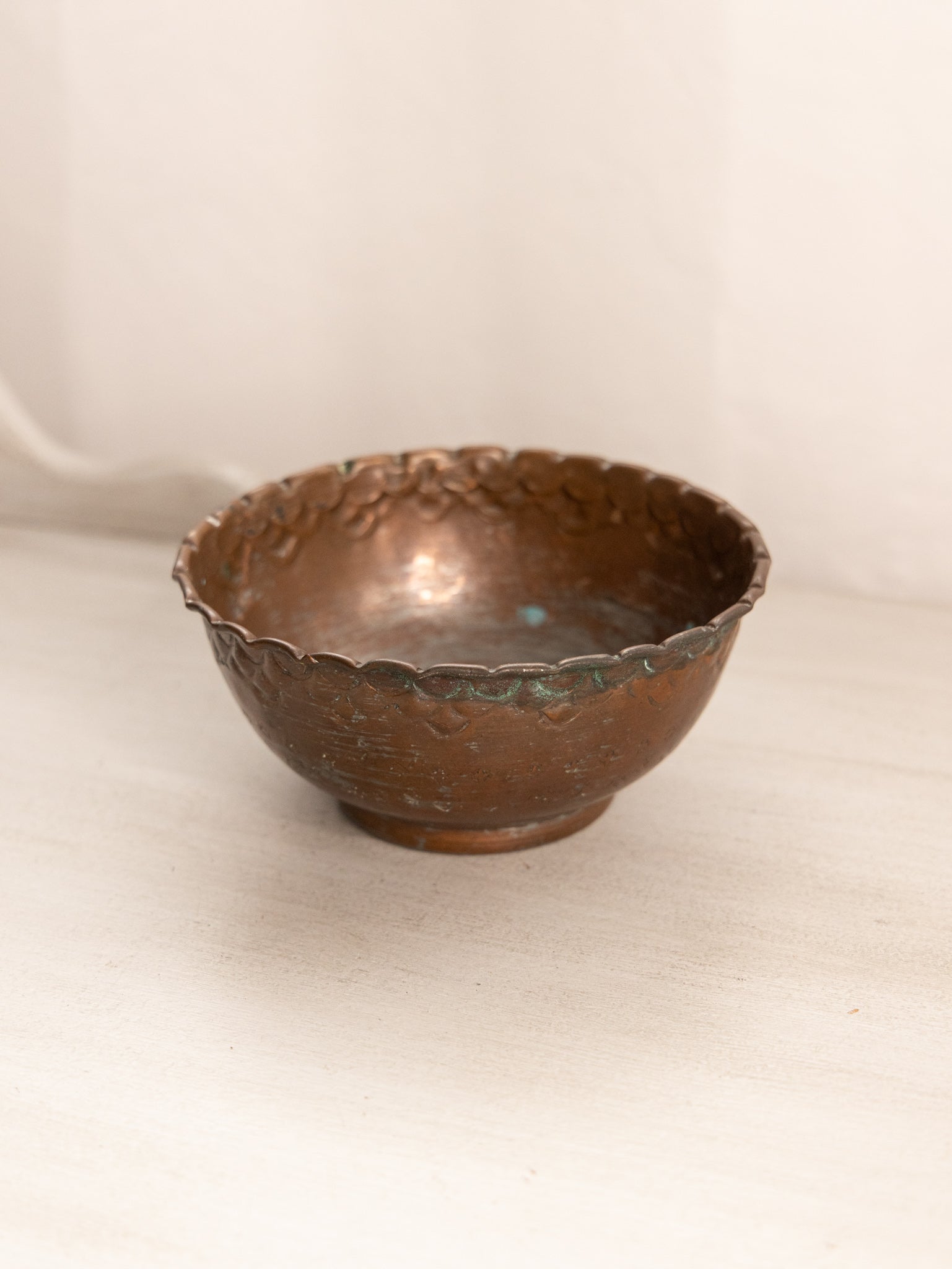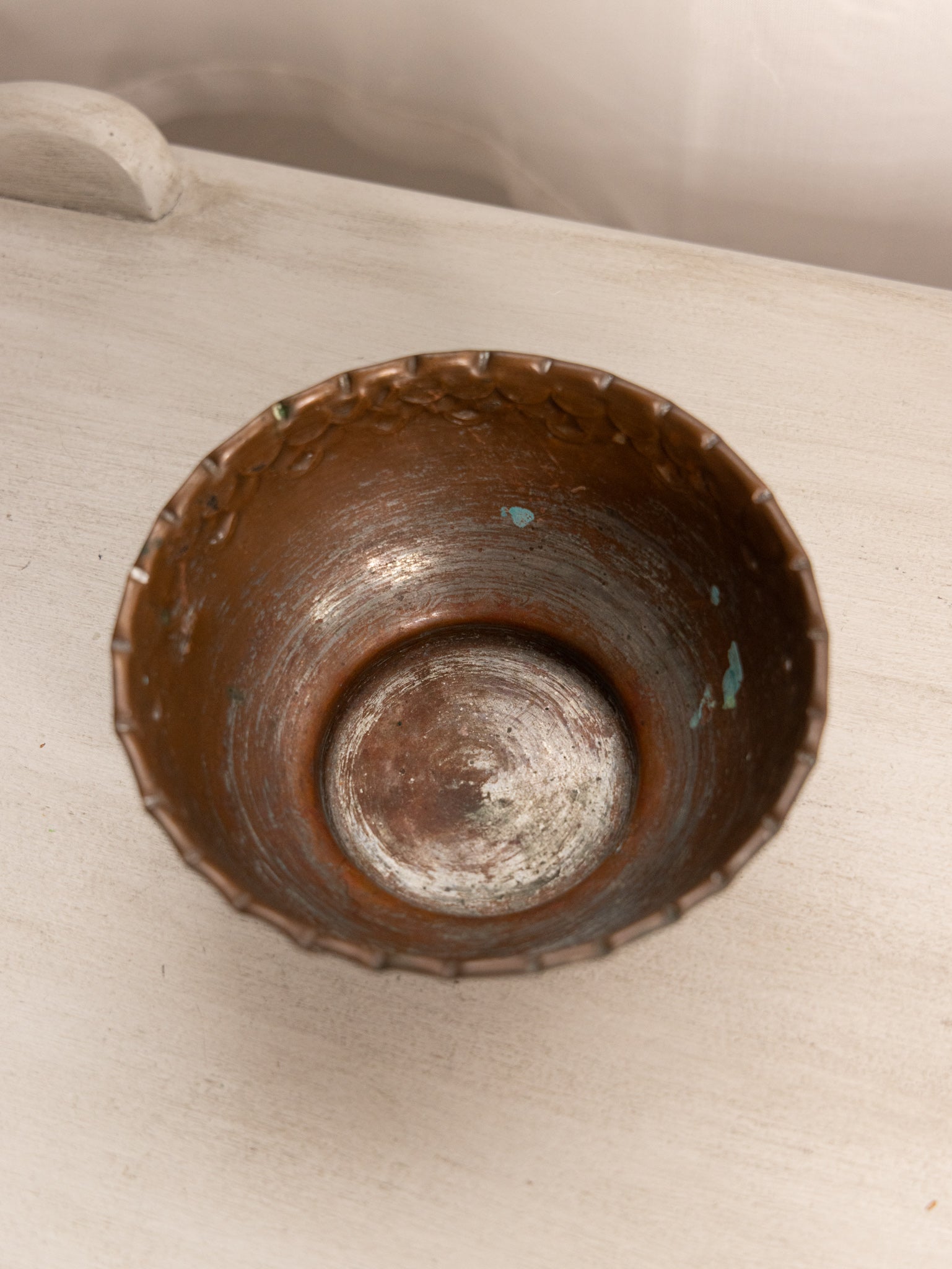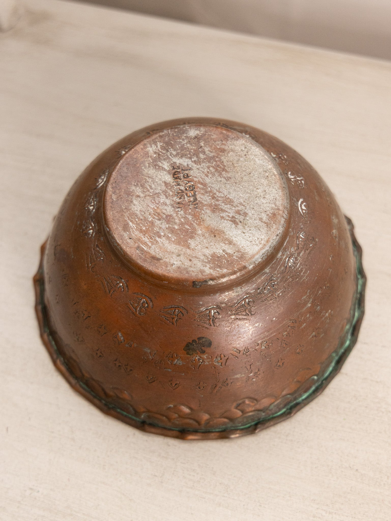 - Great used condition: item(s) may have light scratches, small marks, tarnishing/patina (for metal items), minor unevenness/wobbles, minor roughness/flea bites, and mild wear typical of age and normal use. Handmade in Egypt. Some wear on the outer copper layer.