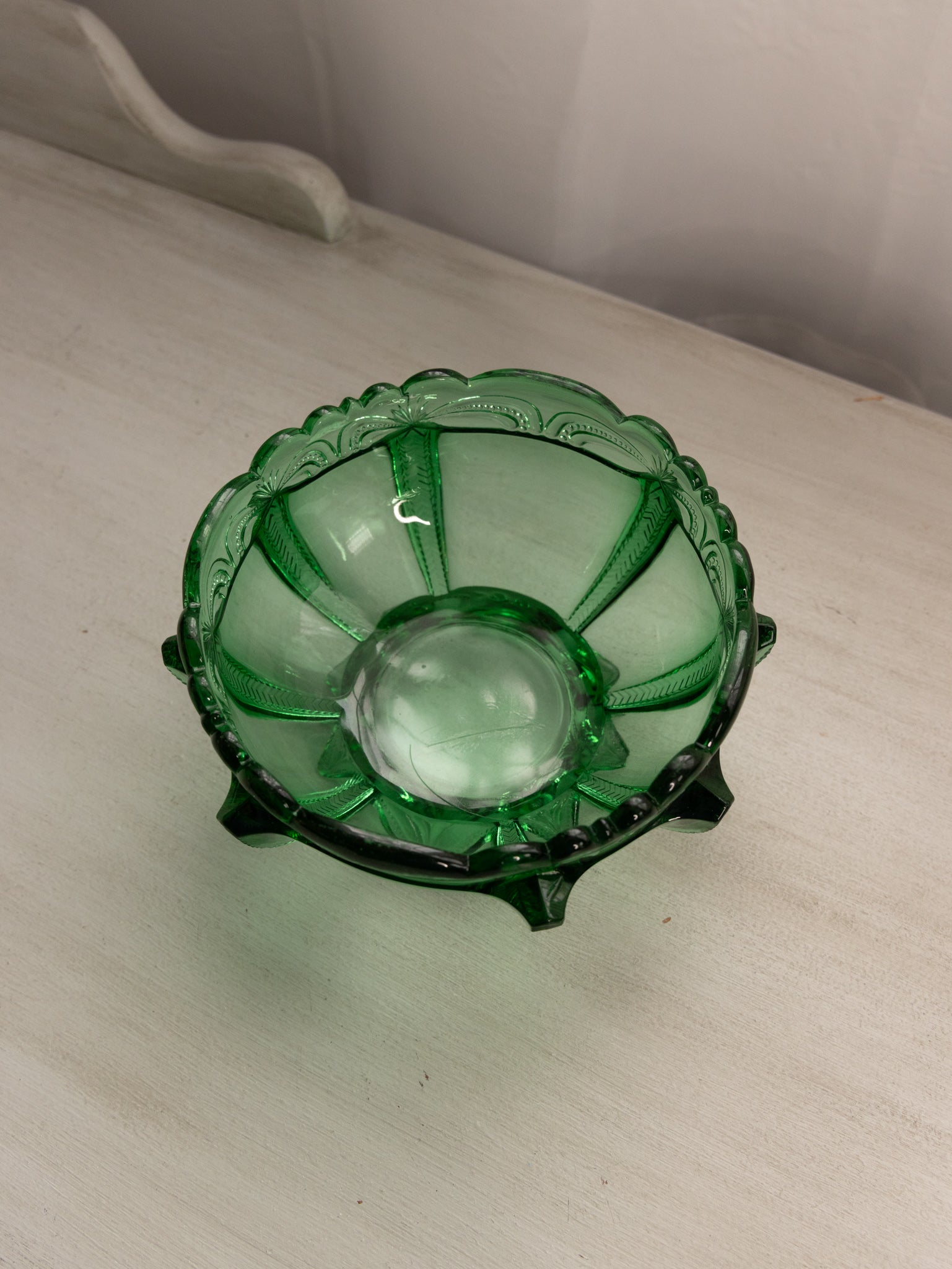 - Great used condition: item(s) may have light scratches, small marks, tarnishing/patina (for metal items), minor unevenness/wobbles, minor roughness/flea bites, and mild wear typical of age and normal use. Medium chip along outer edge of one toe.